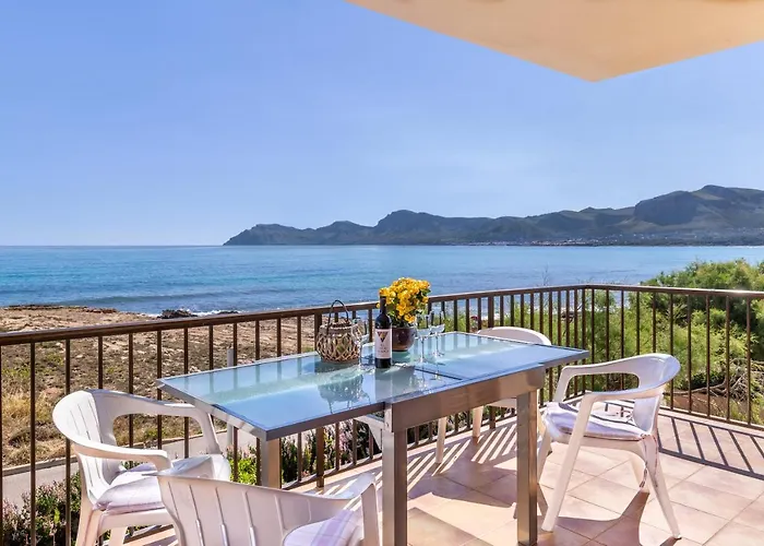 Die Ferienwohnung Front Line Beach House Up To 6 Guests In Mallorca bietet einen Blick auf die Berge und moderne Annehmlichkeiten wie z. B. Eine Klimaanlage. Diese Unterkünfte verfügt über 2 Badezimmer, ausgestattet mit einer Badewanne und einer Dusche. Außerdem stehen ein Haartrockner und Badelaken zur Verfügung.